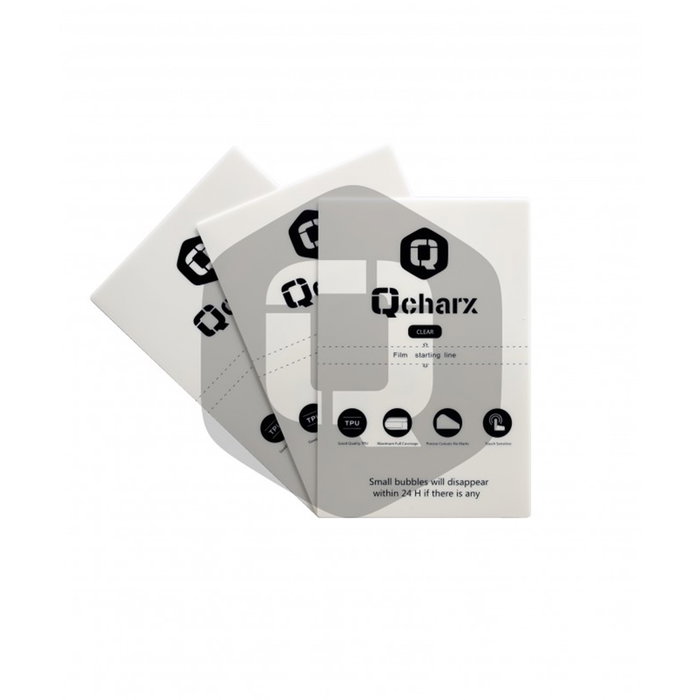 Qcharx Láminas de Protección Frontales de Hidrogel HD - 50 Unidades - Alta Transparencia y Protección contra Golpes y Rasguños, para Pantallas Curvas, 0.15mm