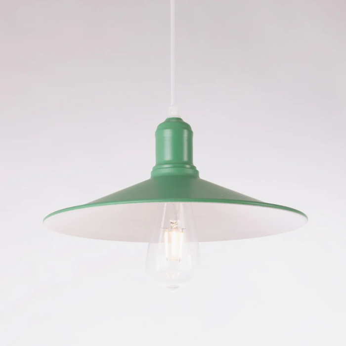 La Lámpara Colgante Metal Guantanamo combina un estilo industrial y vintage. La elección del diseño y sus detalles, como el color, son la clave para que puedas integrarla en el espacio deseado con toda naturalidad. Esta lámpara colgante combina diseño y acabados de muy buena calidad. Fabricada en metal hace que sea un elemento de iluminación con muy buenas prestaciones en cuanto a resistencia. La luz que emita esta lámpara dependerá de la bombilla E27 que elijamos, pudiendo escoger entre un ambiente cálido, neutro o frío. La podrás situar en espacios tan variados como salones, comedores, dormitorios, restaurantes, locales comerciales, etc. Utiliza 1 Bombilla E27 NO INCLUIDA en el producto.