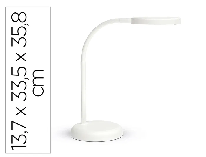 Lámpara de escritorio MAUL. LED. Fabricada en plástico. Potencia de 5W y un flujo luminoso de 769 lúmenes. Temperatura de color fija de 3.000K (luz cálida), con un índice de reproducción cromática (CRI) de 81 para una correcta percepción de los colores. Brazo y cabezal giratorios. Conexión mediante enchufe convencional. Vida útil estimada de 15.000 horas. Longitud de cable 1.800 mm. Medidas: 260x137x335 mm. Peso: 810 gramos. Color blanco.