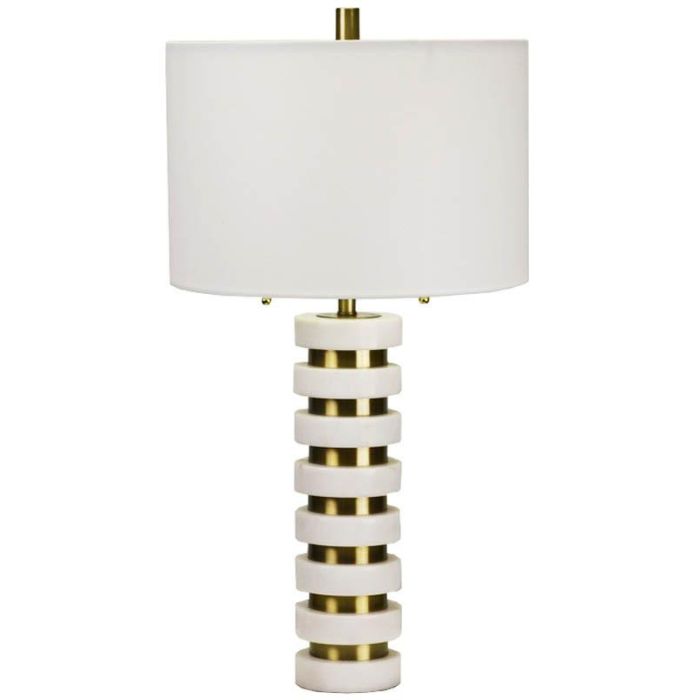 DKD Home Decor Lámpara Sobremesa Blanco Dorado Mármol Lino 38 x 72 x 38 cm