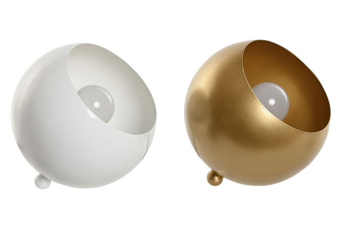 DKD Home Decor Lampara Sobremesa Blanco Dorado Metal Bola E27 15 x 15 x 15 cm (2 Unidades)