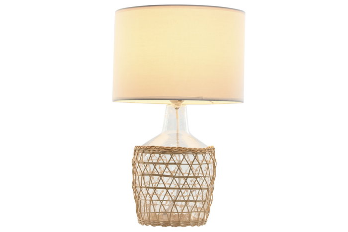 DKD Home Decor Lámpara Sobremesa Mediterraneo Transparente Blanco Cristal Cuerda Poliester 28 x 45 x 28 cm