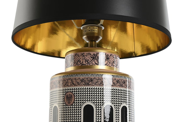 DKD Home Decor Lámpara Sobremesa Jing Door Neoclásico Porcelana Multicolor Negro Dorado Melocoton 40 x 40 x 67.5 cm