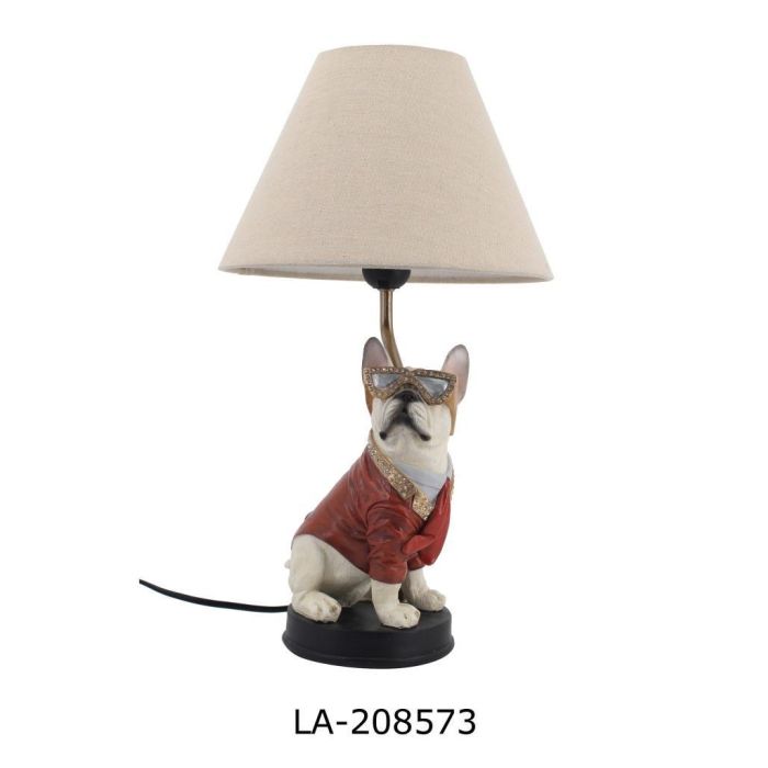 DKD Home Decor Lámpara Sobremesa Perro Blanco Rojo 26 x 46 x 26 cm Resina Metal