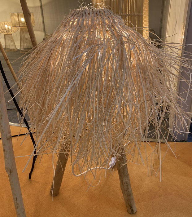 DKD Home Decor Lámpara Sobremesa Natural Ratán y Madera 45 x 53 x 45 cm