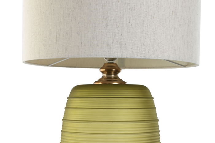DKD Home Decor Lámpara Sobremesa Moderno Verde Musgo Beige Cristal Lino 38 x 57 x 38 cm