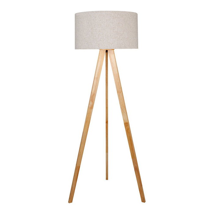 Lámpara de pie e27 madera, hierro y tela edm. incluye interruptor, cable negro. dimensiones lámpara ø50x150cm. dimensiones de la pantalla ø50x28cm.