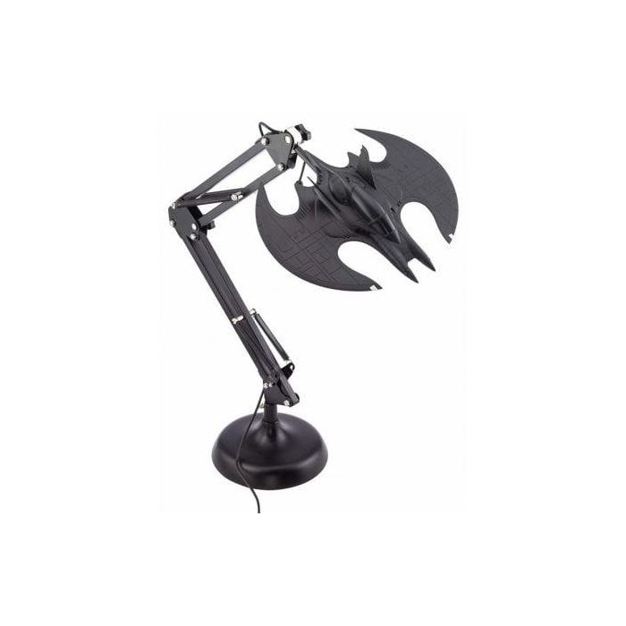 - ¡Una lámpara oficial de DC que es sencillamente espectacular! Es una lámpara ajustable, tipo flexo y tiene la forma de una de los vehículos más icónicos de los que usa Batman, el Batwing.