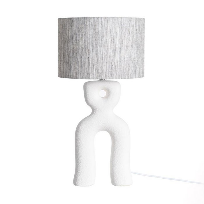 Lámpara Mesa Cerámica Iluminación 30 X 30 X 57 cm Base de Cerámica, Color Blanco: 18X18X36 cm. Pantalla de Tejido (Lino),Color Gris:30X30X20 cm.