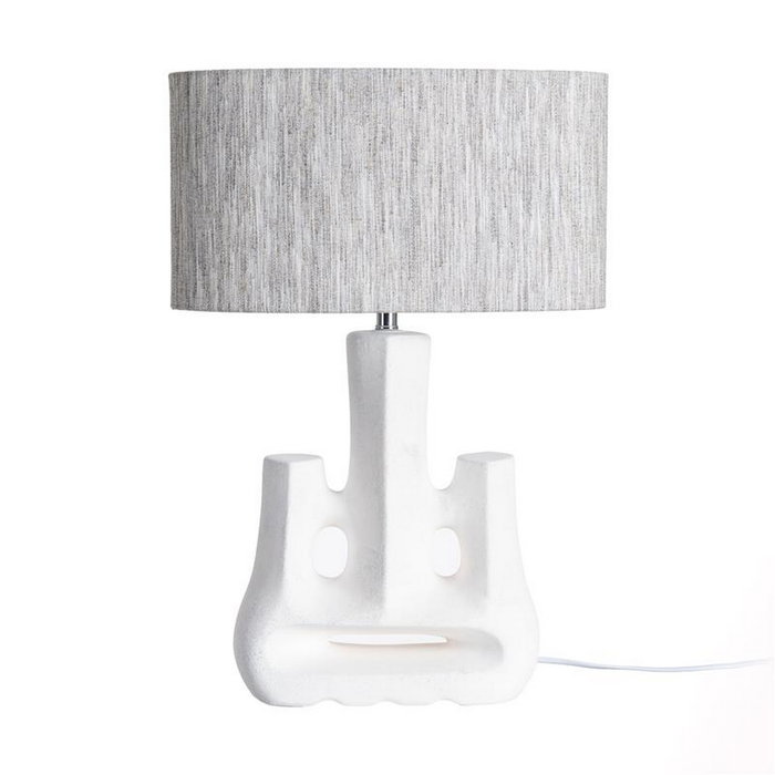Lámpara Mesa Cerámica Iluminación 38 X 20 X 55 cm Base de Cerámica, Color Blanco Rozado: 27X13X33 cm. Pantalla de Tejido (Lino), Color Gris: 38X20X20,5 cm.