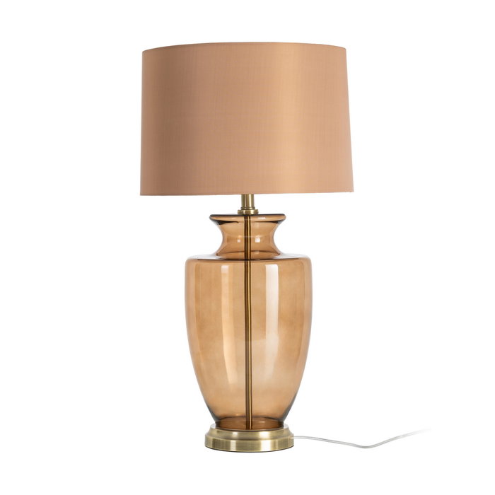 Lámpara Mesa Cristal Iluminación 41 X 41 X 75 cm Base de Cristal y Metal, Medidas 24,5X24,5X50 cm. Pantalla de Tejido (Poliéster), Medidas 41X41X26,5 cm.