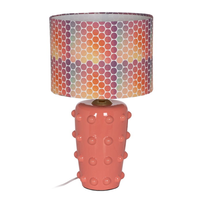 Lámpara Mesa Rosa Cerámica Iluminación 35,50 X 35,50 X 60,50 Base de Cerámica, Medidas: 21X21X34 cm. Tulipa de Tejido (100% Poliéster) y Metal, Medidas:35,5X35,5X24,5 cm.