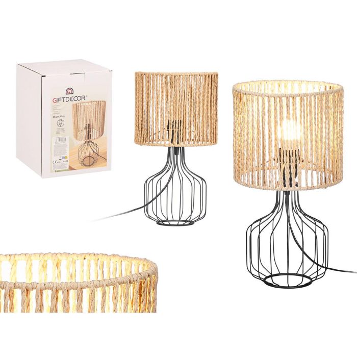 Giftdecor Lámpara Sobremesa Base Tulipa Cuerda Metal Papel Negro Natural 20x28x20 cm (Set de 4)