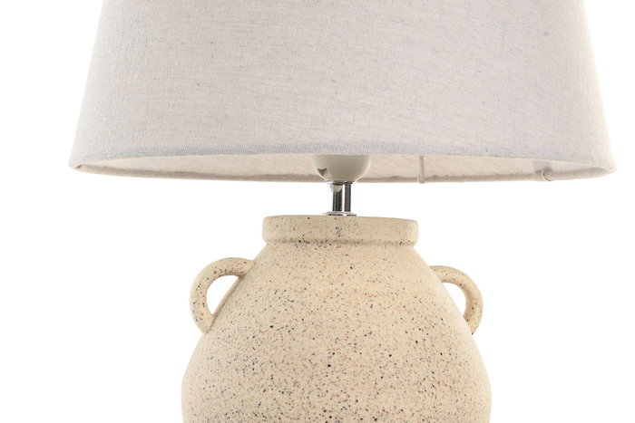 DKD Home Decor Lámpara Sobremesa Blanco Rozado Gres y Lino 33 x 50 x 33 cm
