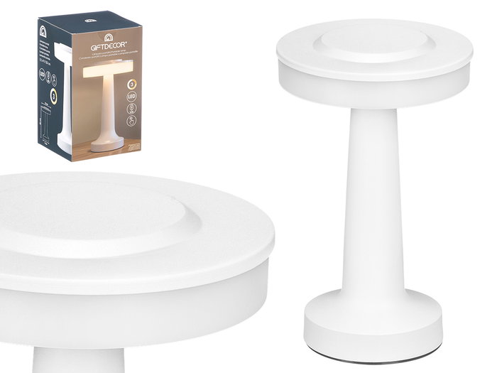 Giftdecor Lámpara Space de Sobremesa con Toque Táctil, Blanco, Luz LED Recargable USB-C, 5-6h Autonomía, 12 x 20 x 9 cm (Set de 8)