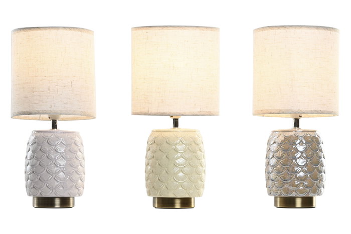 DKD Home Decor Lámpara Sobremesa Beige Blanco Cerámica Poliéster Metal 16 x 33 x 16 cm