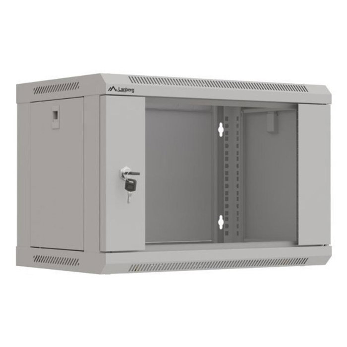 Lanberg - Armario Rack de Pared 19 Pulgadas 6U, 60 kg de Carga, Dimensiones 540x350x370 mm, Color Gris, con Puerta de Cristal y Cerradura para Equipos de Red