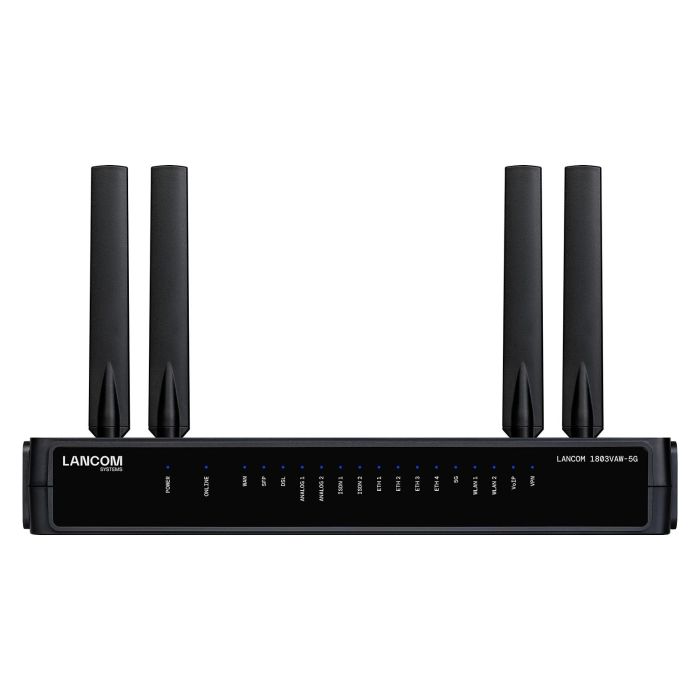 LANCOM 1803VAW-5G (EU), Negro, Montaje de sobremesa/pared, 1 Ventilador(es), Externo, RTP, SIPS, SRTP, 10,100,1000 Mbit/s