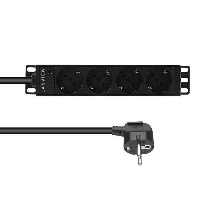 Lanview Regleta de Alimentación 10" 1U para Rack, 2m, 13A con 4 Tomas Schuko y Protección Sobretensiones