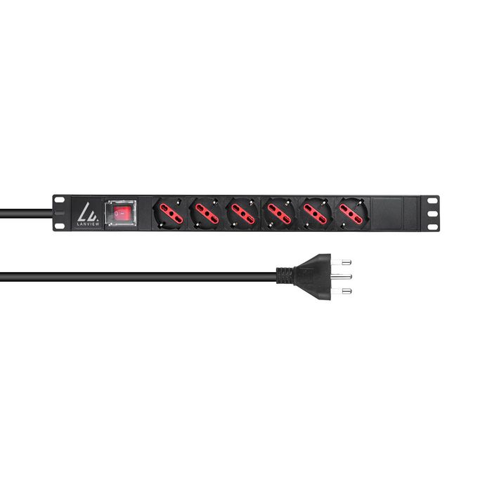Lanview Regleta de Alimentación para Rack 1U con 6 Enchufes Schuko/Italiano, Cable 2m, 13A