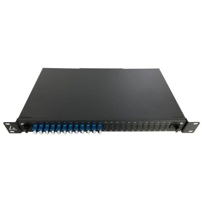 Montado con 12 adaptadores LC Dúplex Monomodo. 24 pigtails pre-montados en casete de empalme.