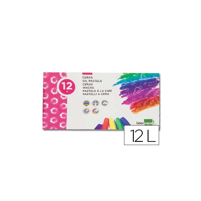 Liderpapel Lápices de cera semi blanda, colores intensos, papel antimanchas, caja 12 unidades colores surtidos