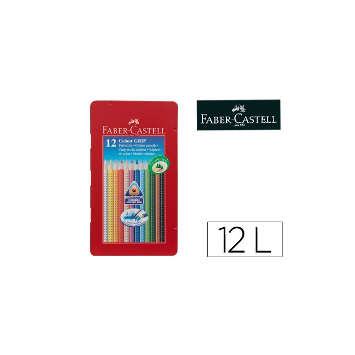 Faber Castell Lápices de Colores Acuarelables Colour Grip Triangular Caja Metálica de 12 Colores Surtidos