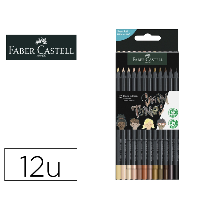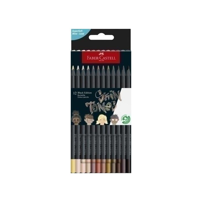 Faber Castell Lápices de Colores Black Edition Tonos de Piel Caja 12 Unidades