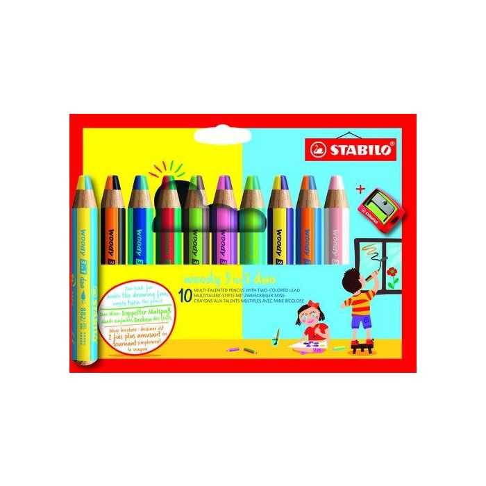 Stabilo Lápices De Colores Woody 3 En 1 C-Surtidos Estuche De 10 Unidades + 1 Sacapuntas