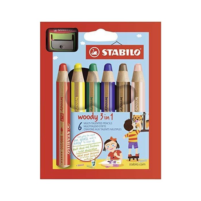 Stabilo Lápices De Colores Woody 3 En 1 Estuche 6 Ud + 1 Sacapuntas