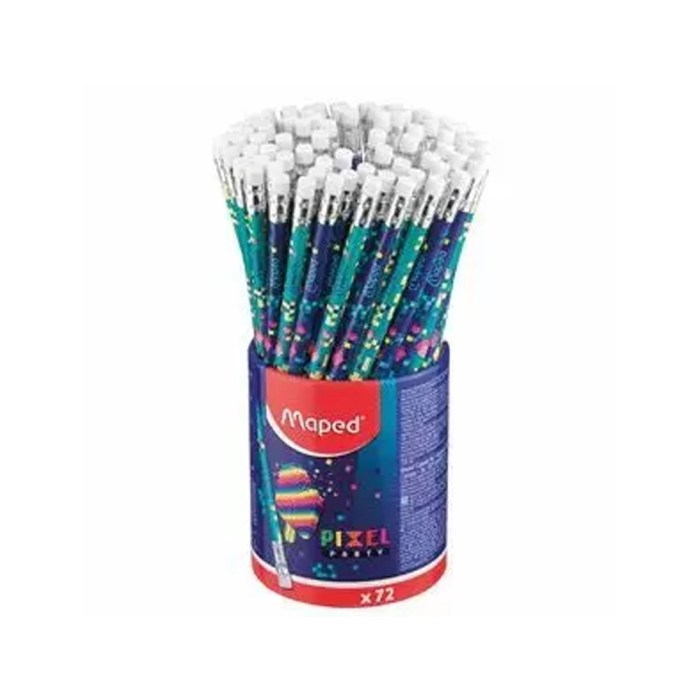 Maped Lápices de Grafito Pixel Party HB con Goma de Borrar, Bote 72 Unidades