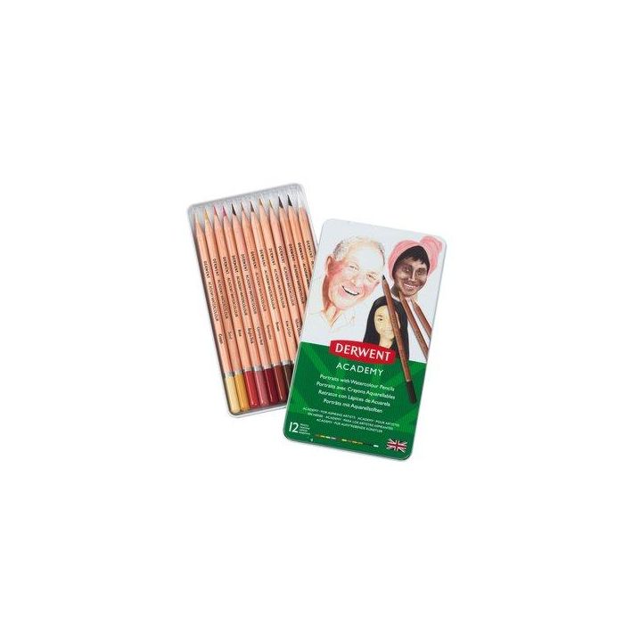 Lapices Derwent Academy Caja Metalica De 12 Piezas Acuarelables Colores Piel