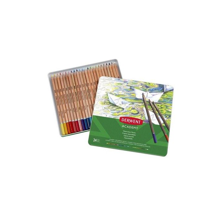 Lapices Derwent Academy Caja Metalica De 24 Piezas Acuarelables