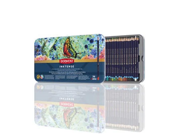 Derwent Inktense Caja Metálica 36 Unidades Colores Surtidos Lápices Solubles en Agua