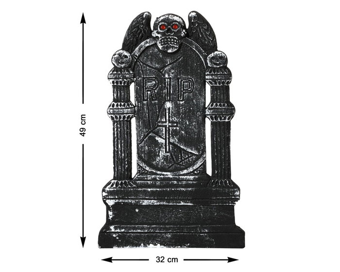 Lápida Con Cráneo Alado Y Ojos Luminosos 49x32 cm para Halloween y Decoración Gótica