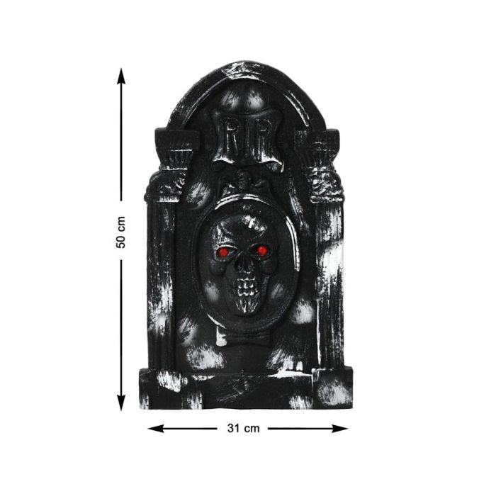 Lápida Con Calavera Central Luminosa Y Detalles Góticos 50x31 cm