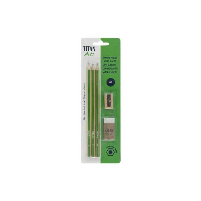 Lapiz De Grafito Titan Arts Creative Ecologico - Hb Set 3X Lapices 1X Goma De Borrar 1X Afilalapiz