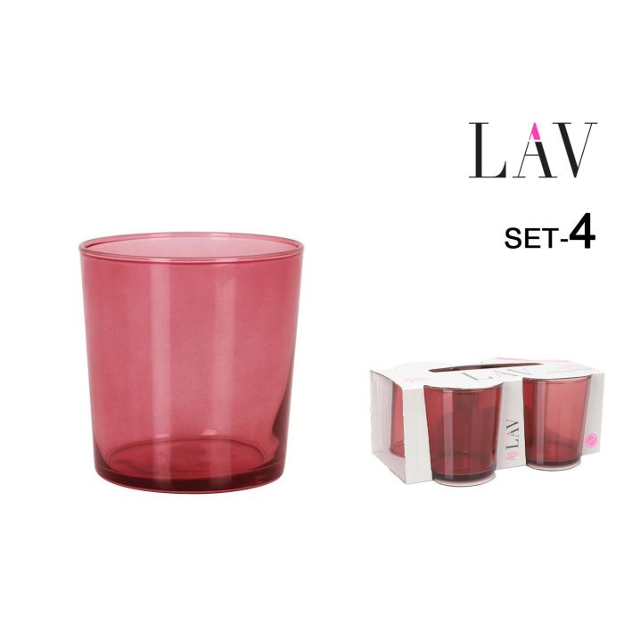 LAV Set de 4 Vasos Pinta, 340 ml, Color Rojo, 8.5 cm de Diámetro x 9 cm de Altura, Vidrio (6 Cajas)