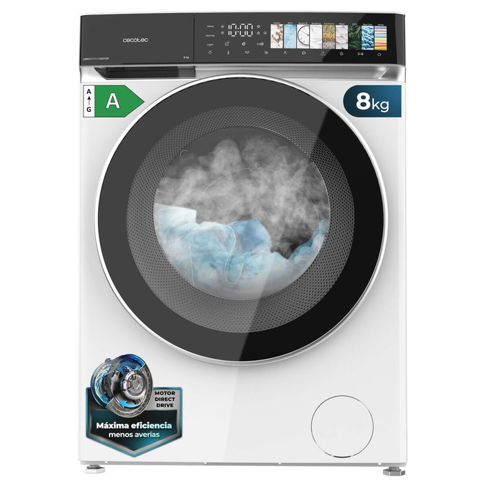 La lavadora Cecotec Bolero DressCode 8970 Direct Drive es una solución eficiente y avanzada para el cuidado diario de la ropa en el hogar, indicada para quienes buscan tecnología de última generación y facilidad de uso en un electrodoméstico esencial. Este modelo cuenta con una capacidad de 8 kg, ideal tanto para familias como para usuarios con necesidades medias de lavado, permitiendo procesar grandes cargas en cada ciclo. Incorpora un motor Direct Drive, que elimina las correas y poleas, de modo que el motor se acopla directamente al tambor para ofrecer un funcionamiento más silencioso, una mayor eficiencia energética y una vida útil prolongada con menos vibraciones. Destaca además por su clasificación energética A, garantizando un consumo mínimo de electricidad y un compromiso real con el ahorro y la sostenibilidad. Equipado con 11 programas de lavado, este electrodoméstico permite elegir entre distintas opciones para prendas delicadas, ropa de algodón, lavado rápido y otros tejidos, adaptándose a diferentes necesidades con extrema versatilidad. También presume de funciones avanzadas como SteamMax para vapor, tecnología Spa Care para el mejor acabado en prendas sensibles, y opciones como Soil Level para ajustar la intensidad de la limpieza, Delay End para programar la hora de finalización, My Fav para guardar configuraciones favoritas y Drum Clean Plus que ayuda a mantener el tambor en óptimas condiciones higiénicas. Su pantalla FullColor facilita la navegación entre funciones, mientras que la puerta XXL facilita la carga y descarga incluso de piezas voluminosas. El diseño en color blanco y el sistema de carga frontal aportan modernidad y funcionalidad, complementados por detalles como la luz interior y la función Stop&Go, que permite pausar y reanudar el lavado de manera cómoda. Trabaja con una tensión de 240 V, adaptada al estándar español, e integra una selección de programas y comandos en idioma español para una experiencia de usuario óptima. Con esta lavadora, Cecotec demuestra su apuesta por la innovación y la eficiencia, ofreciendo una opción robusta y fiable para el cuidado de la ropa doméstica.