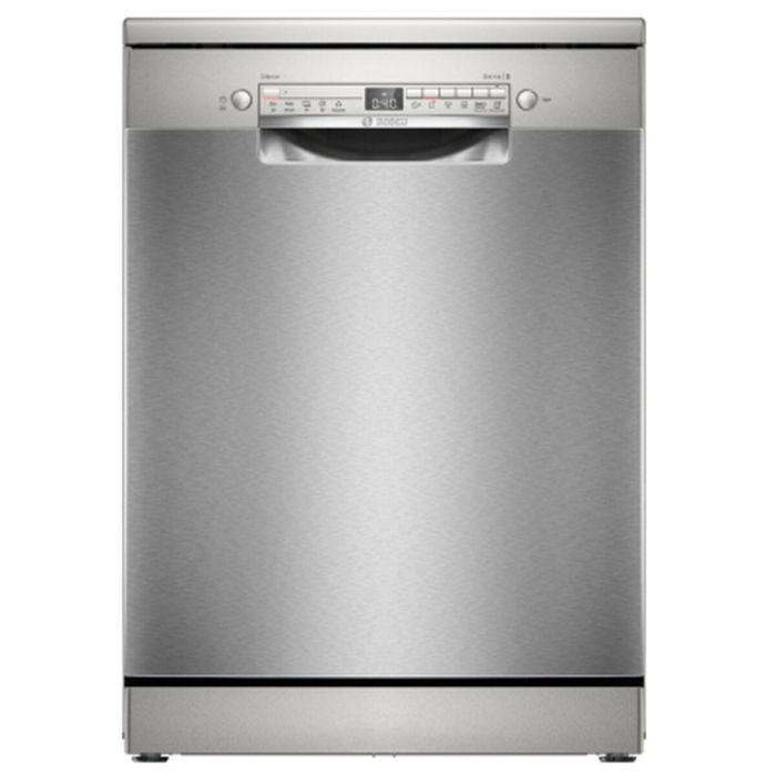 Bosch Serie 2 SMS2HTI06E. Tipo de instalación: Independiente, Talla del producto: Tamaño completo (60 cm), Color de la puerta: Gris, Metálico. Número de cubiertos: 13 cubiertos, Clase de emisión de ruido: C, Nivel de ruido: 46 dB. Ajuste de patas: 2 cm, Aplicaciones de control compatibles: Bosch Home Connect. Clase de eficiencia de energía: C, Consumo de agua por ciclo de lavado: 9 L, Consumo de energía por 100 ciclos: 74 kWh. Ancho: 600 mm, Profundidad: 600 mm, Altura: 845 mm