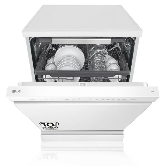 El lavavajillas LG DF355FW es un electrodoméstico diseñado para ofrecer eficiencia y comodidad en el lavado de vajillas con un formato estándar y funcional, caracterizado por un ancho real de 60 cm y un elegante acabado en color blanco que facilita su integración en cualquier cocina. Este modelo cuenta con una clase de eficiencia energética C, lo que permite un consumo responsable, mientras que su consumo de agua es de 9,5 litros por ciclo de lavado, optimizando el uso de recursos. Incluye una pantalla incorporada que facilita la selección y monitorización de los distintos programas, entre los que se encuentran opciones adaptadas a distintas necesidades, como Auto, Delicado, Eco, Intenso, Turbo, Aclarado, Rápido y Extraseco, aportando versatilidad según el tipo y cantidad de carga. Su función de media carga permite emplear ciclos más cortos y económicos cuando la carga es menor, y el inicio retrasado brinda flexibilidad para programar el lavado en el momento más conveniente. Entre sus características destacadas, incorpora un bloqueo para niños que garantiza la seguridad durante su funcionamiento y evita aperturas accidentales, así como conectividad Wi-Fi que posibilita el control remoto y la gestión inteligente del aparato desde dispositivos móviles. Además, dispone de una tercera bandeja portacubiertos que mejora la organización interna y optimiza el espacio disponible en cada lavado. La tecnología invertida presente en este modelo contribuye a un rendimiento eficiente y a la durabilidad del producto. En conjunto, el lavavajillas LG DF355FW se posiciona como una opción práctica, segura y adaptada a las necesidades de hogares que buscan un equilibrio entre consumo, funcionalidad y conectividad avanzada.