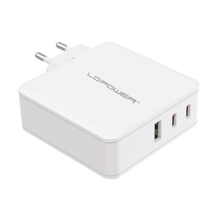 LC-Power LC-GAN-100 Cargador GaN 2x USB-C/1x USB-A 100W Power Delivery 3.0 Blanco para dispositivos universales