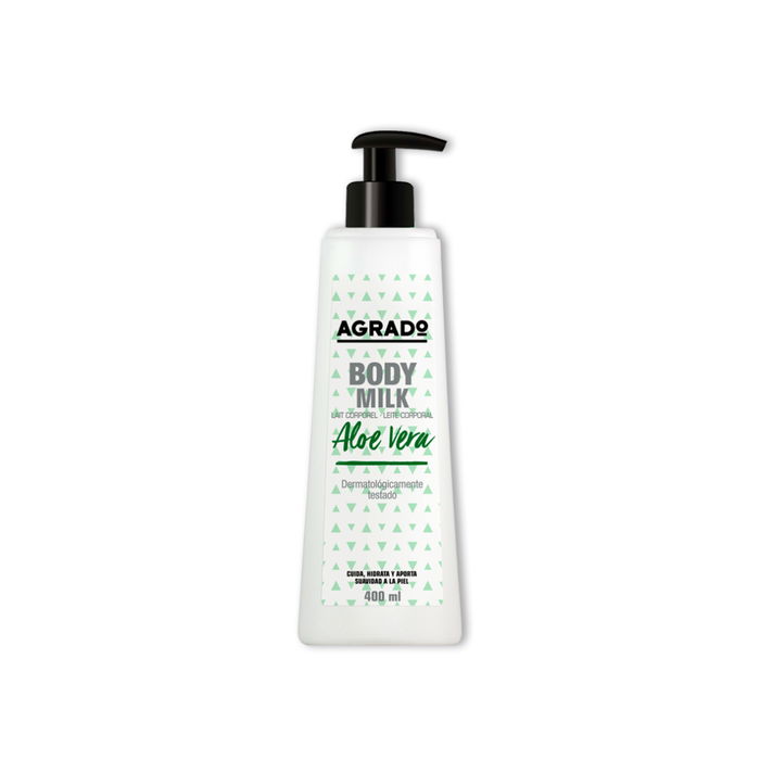 Leche corporal con aloe vera de agrado cosmetics: regeneración e hidratación para tu pieldescubre la leche corporal con aloe vera de agrado cosmetics, especialmente formulada para regenerar e hidratar tu piel en profundidad. con ingredientes naturales y una textura ligera, esta leche corporal es ideal para mantener tu piel suave, nutrida y protegida contra las irritaciones diarias.beneficios de la leche corporal con aloe veraregeneración de la piel: el aloe vera es conocido por sus propiedades regenerativas. esta leche corporal ayuda a reparar la piel, promoviendo la regeneración celular para mantenerla sana y radiante.prevención de irritaciones: gracias a las propiedades calmantes del aloe vera, esta leche corporal puede ayudar a prevenir y aliviar las irritaciones y rojeces, proporcionando una sensación de confort inmediato.hidratación intensa: enriquecida con aceite de almendras dulces, esta fórmula ofrece una hidratación profunda, manteniendo la piel flexible y suave durante todo el día.características destacadasdermatológicamente testado: este producto ha sido probado dermatológicamente para asegurar su compatibilidad con todo tipo de pieles, incluso las más sensibles.textura ligera y no grasosa: su textura ligera se absorbe rápidamente, sin dejar residuos grasos, permitiéndote vestirte inmediatamente después de su aplicación.fórmula nutritiva: combinando los beneficios del aloe vera y el aceite de almendras dulces, esta leche corporal nutre la piel en profundidad, mejorando su apariencia y textura.cómo utilizar la leche corporal con aloe veraaplicar generosamente: extiende una cantidad generosa de leche corporal sobre la piel limpia y seca.masajear suavemente: realiza un suave masaje con movimientos circulares hasta que el producto se absorba completamente.disfrutar de sus beneficios: permite que los ingredientes naturales trabajen para mantener tu piel hidratada, nutrida y protegida durante todo el día.por qué elegir la leche corporal con aloe vera de agrado cosmeticsla leche corporal con aloe vera de agrado cosmetics es perfecta para quienes buscan una hidratación profunda y una piel regenerada. su fórmula enriquecida con aloe vera y aceite de almendras dulces proporciona una nutrición intensa y ayuda a prevenir irritaciones, asegurando que tu piel se mantenga suave, flexible y saludable.además, su textura ligera y de rápida absorción la convierte en una opción ideal para el cuidado diario. incorpora esta leche corporal a tu rutina diaria de belleza y disfruta de los beneficios de una piel regenerada, hidratada y protegida.
