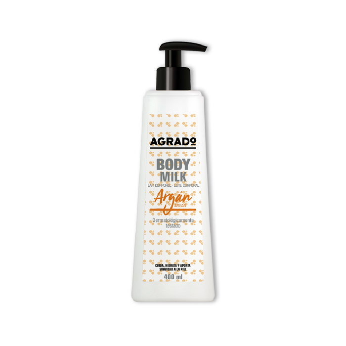 Leche corporal argán de agrado cosmeticsdescubre el secreto para una piel perfectamente hidratada y nutrida con la leche corporal de argán de agrado cosmetics. este body milk está diseñado para ofrecer una hidratación profunda, ayudando a regenerar y nutrir tu piel, dejándola suave y radiante.beneficios:regeneración y nutrición: enriquecida con aceite de argán, conocido por sus propiedades regenerativas y nutritivas, esta leche corporal puede ayudar a restaurar la vitalidad de tu piel.hidratación profunda: perfecta para combatir la sequedad, proporcionando una hidratación intensa que deja tu piel suave y flexible.modo de uso:aplicación: aplica generosamente sobre el cuerpo.masaje: masajea suavemente hasta que la leche corporal se absorba completamente.frecuencia: utiliza diariamente para obtener los mejores resultados.calidad garantizada:dermatológicamente testado: asegurando que es adecuada para todo tipo de pieles y respetuosa con tu dermis.¡descubre el body milk de argán de agrado cosmetics y dale a tu piel el cuidado que se merece!