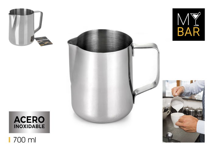 My Bar Lechera Inoxidable 700 ml para Bar, Acero Inoxidable, Dimensiones: 13.2 cm (L) x 9.5 cm (A) x 11.6 cm (Al) (12 Unidades)