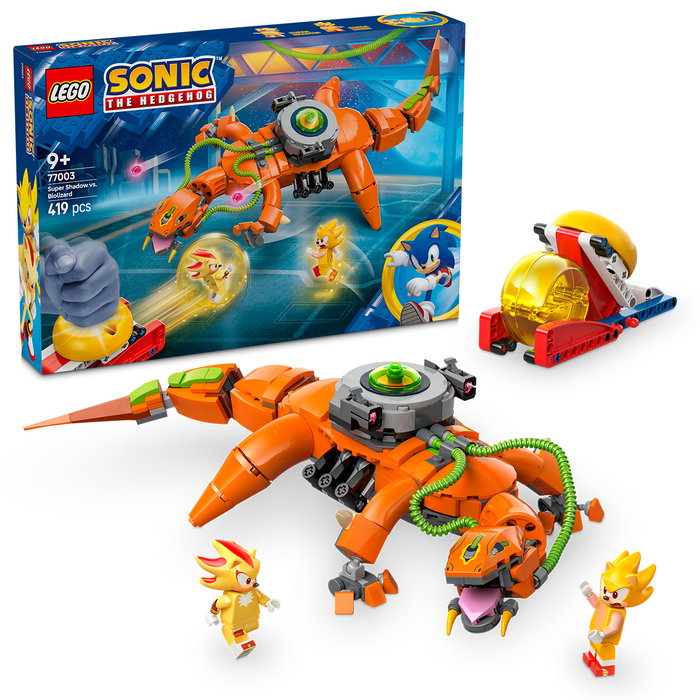 Imagina emocionantes aventuras con el set de construcción Super Shadow vs. Biolizard, un juguete LEGO Sonic the Hedgehog coleccionable inspirado en la saga de videojuegos para niños, niñas y fans. Contiene una figura construible del Biolizard con cápsula de energía, una esfera de velocidad con lanzador y accesorios, como una Chaos Emerald. Además, el divertido regalo para jugadores incluye otros 2 personajes en formato de minifigura: Super Shadow y Super Sonic.