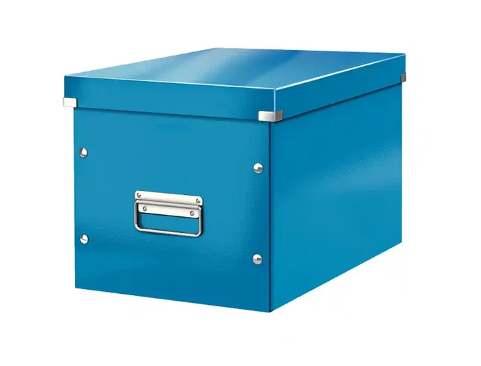 Leitz Caja Click&Store Cubica Grande, Azul, 320x360x310 mm, Contenedor de Cartón Reciclado con Asas Metálicas y Gran Capacidad