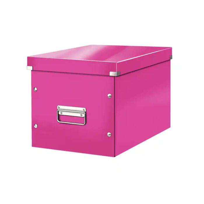 Leitz Caja Click&Store Cubica Grande Fucsia 320x360x310 mm Contenedor de Almacenamiento con Asas Metálicas Plegable Cartón Reciclado