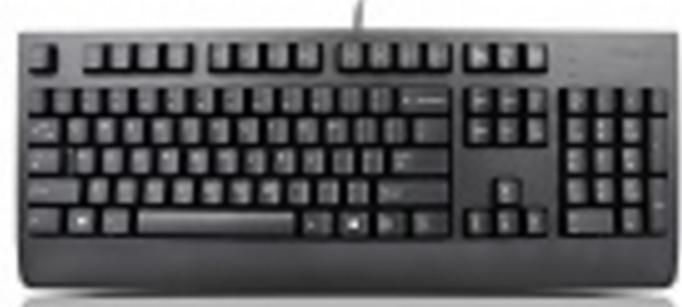 The ThinkPad and ThinkCentre high-quality keyboard tradition continues with this general purpose USB keyboard. The Preferred Pro II USB Keyboard is very similar to those that come as standard with ThinkCentre desktop systems. It is also compatible with USB enabled ThinkStation and ThinkPad notebook systems and docks. Rubberised wrist rest coating provides a soft support surface for your comfort Common Microsoft Windows shortcuts are highlighted on appropriate key fronts to help maximise your productivity Three operation mode LEDs located in the upper right corner will be activated individually or in combination depending on definition compatible with USB 2.0. The three indicators have the names ‘Num Lock’, ’Caps Lock’ and ‘Scroll Lock’. All keys in the QWERTY and NUMPAD sections are rubber dome switch keys Adjustable tilt legs It is a configurable 104/105/106/107/109 key layout with languages according to the customer's requirements. Colour: black Standard key life cycle: 10 million clicks under normal operation. (6 cycle/second, 15-20 lbs.)