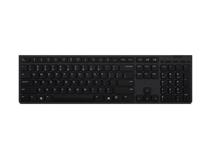The Lenovo Professional Wireless Rechargeable Keyboard, its full-size keyboard sports scissor switches that create an elevated typing experience. Plus, its covers are made from eco-friendly 65% recycled material that protects the environment.